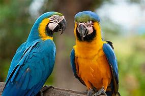 Colorful parrots and toucans in the surrounding trees.